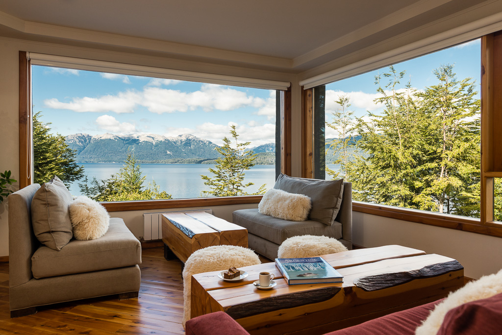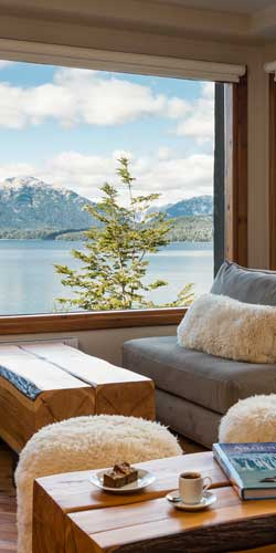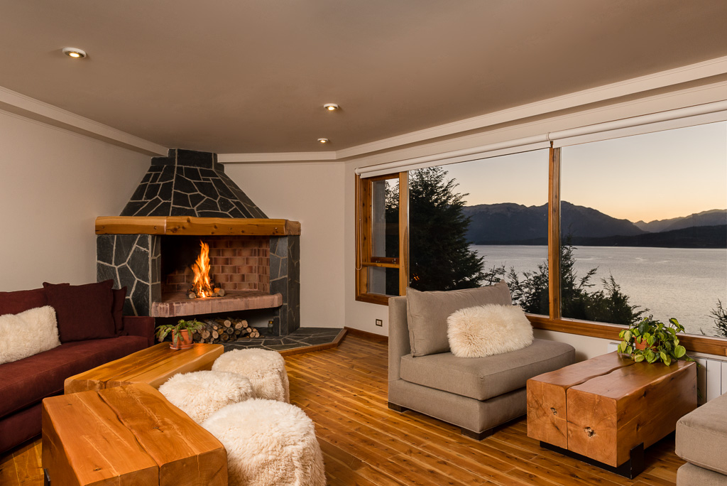 Los amplios ventanales de la hostería, permiten ver el lago y el atardecer único de la Patagonia junto al majestuoso Lago Nahuel Huapi. Deleitese con nuestra carta de tragos, cervezas y vinos regionales.